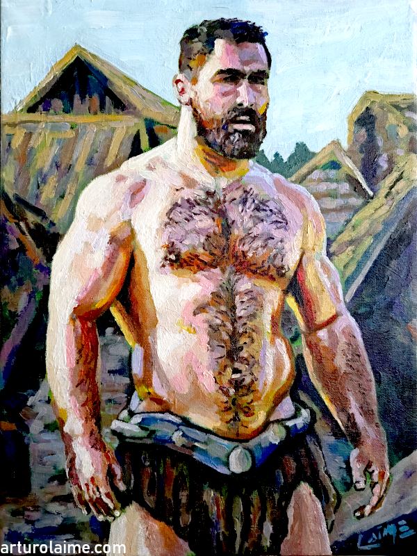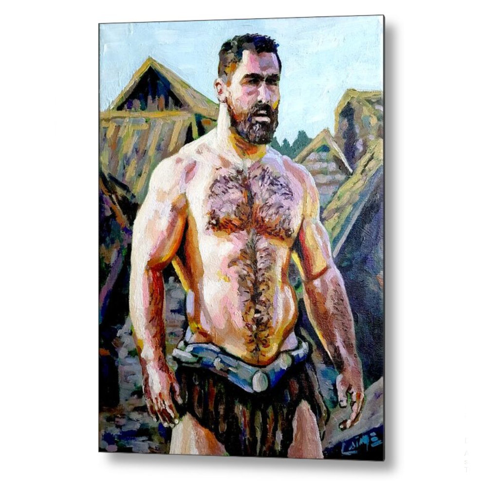 As part of the Archaic series, the painting reflects on primal masculinity, communal roles, and the enduring symbolism of the guardian figure—timeless, rooted, and shaped by the demands of his world.